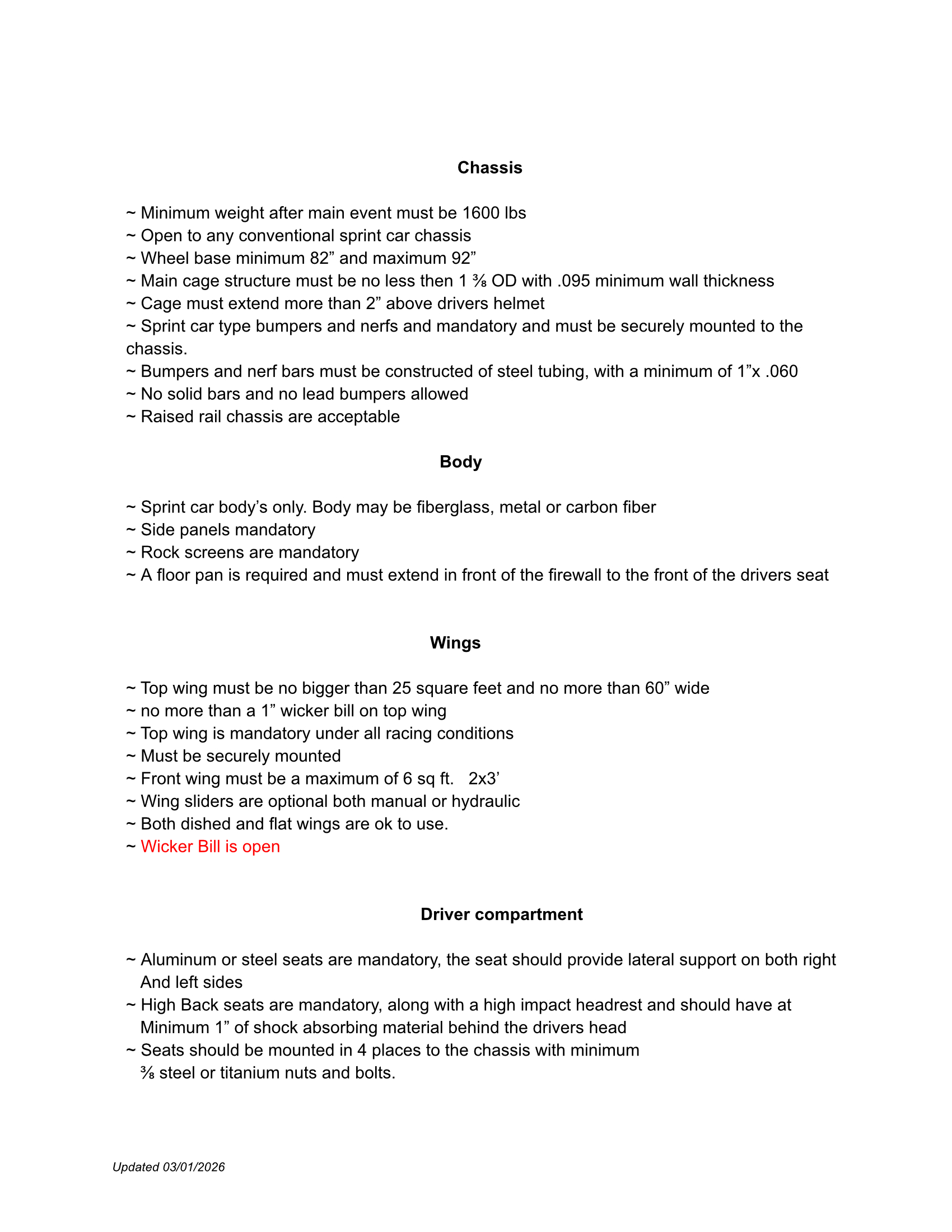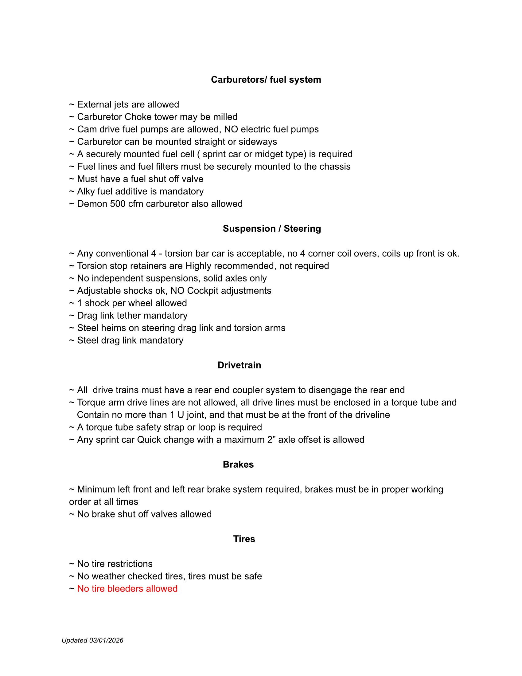 Spec 360 sprint car racing is a thrilling variation of traditional sprint car competition, emphasizing fairness and driver skill. These cars are powered by 360-cubic-inch engines built to specific specifications with a 1600 lb. minimum weight (driver + car) ensuring a level playing field for all competitors. There are requirements for the engine, suspension, fuel system, chassis, body, wings, and more.